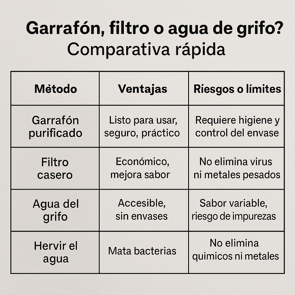 Pero recuerda: tú también eres responsable de que el agua se mantenga pura. Si el dispensador está sucio o si dejas el garrafón destapado por días, el riesgo de contaminación aumenta.